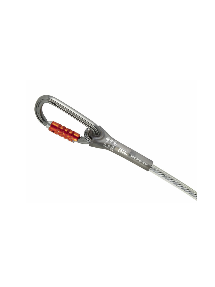 WIRE STROP to zawiesie ze stali ocynkowanej o średnicy 6,5 mm i zakończeniach o różnych rozmiarach. Umożliwia wiele konfiguracji przy zakładaniu: bezpośrednio na punkcie stanowiskowym lub wokół odpowiedniej konstrukcji. Plastikowa osłona ustawia łącznik w prawidłowej pozycji i ułatwia wpinanie. Występuje w pięciu długościach (50, 100, 150, 200, 300 cm).
