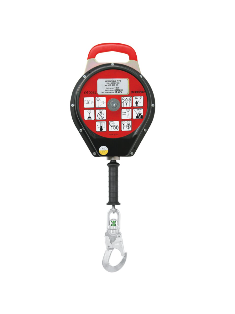 CR 210 to profesjonalne urządzenie samohamowne przeznaczone do pracy w pionie, wyposażone w ocynkowaną linę stalową o długości 10 m. Solidna stalowa obudowa oraz trwałe komponenty robocze zapewniają wysoką odporność na intensywne użytkowanie w wymagających warunkach pracy na wysokości.