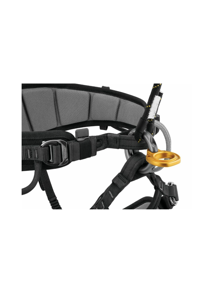 • Pozwala na zdublowanie tekstylnego punktu wpinania: – optymalna organizacja różnego rodzaju sprzętu (lonża, przyrząd zjazdowy, zaciskowy, szelki…). – usztywniony punkt przedni dla łatwiejszego pozycjonowania i wpinania karabinków, – możliwość ustawienia pod obciążeniem, dla optymalnej pozycji podczas użytkowania, – ułatwienie wpięcia wspornika w razie długotrwałego wiszenia (z szeklami).