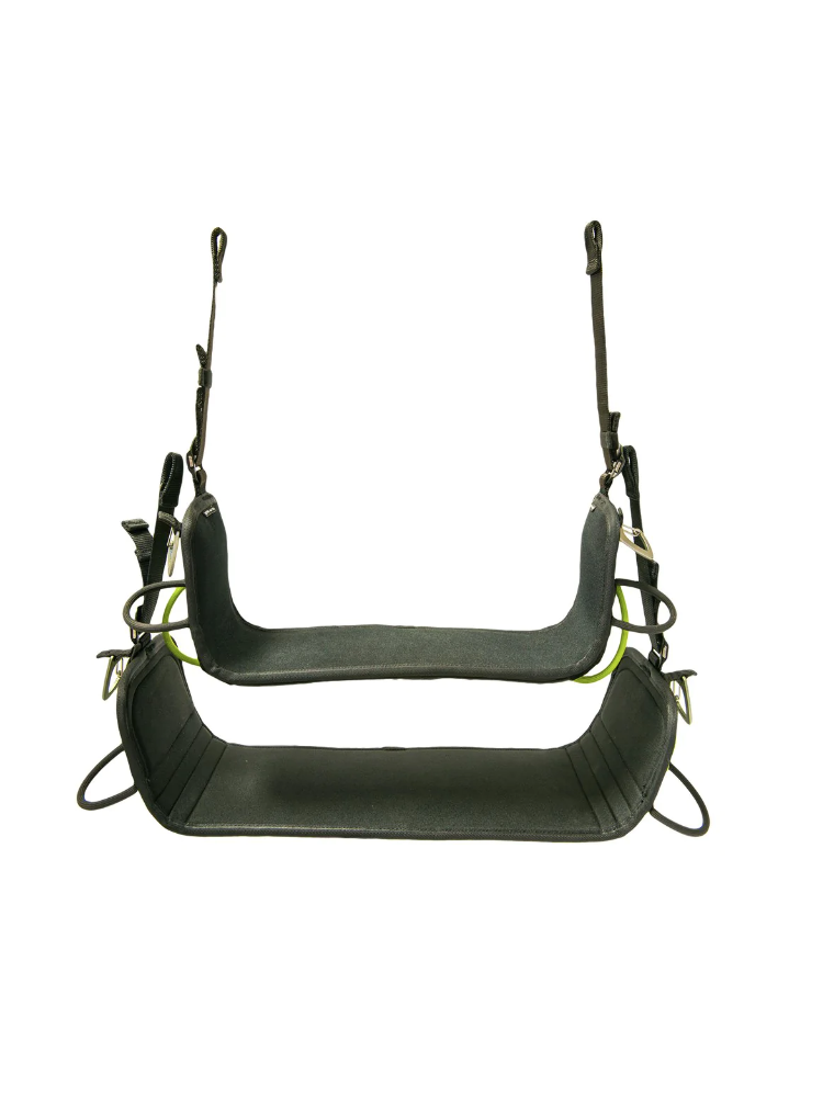 Wygodna, wyprofilowana konstrukcja ma zaokrąglone krawędzie, które zapobiegają uciążliwemu uciskaniu po dłuższym czasie użytkowania, a wykorzystane taśmy z klamrami Easy Glider umożliwią Ci łatwą regulację długości. Ławeczkę wyposażono także w dwa karabinki pozwalające na bezpieczne przypięcie do uprzęży.