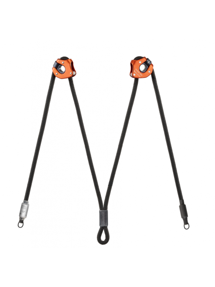 Odmiana TWIN charakteryzuje się dwiema linkami, o maksymalnej długości roboczej do 130 cm każda. Łączy je jeden centralny, przeszyty punkt wpięcia. Na każdej stronie znajduje się pozycjoner, umożliwiający indywidualną regulację długości ramienia, pozwalając na precyzyjne ustawienie technika podczas pracy. Świetnie sprawdzi się przy przepinaniu się przez kolejne punkty stanowiskowe.