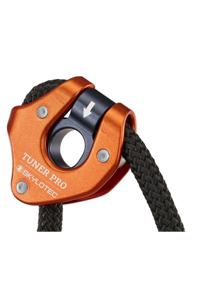 Za obsługę liny odpowiada niesamowicie pomysłowo zaprojektowany, opatentowany pozycjoner, łączący w sobie ergonomię pracy oraz ultraniską wagę. Działa on w bardzo prosty sposób – pod wpływem obciążenia lina blokuje się na krzywce, a żeby ją odblokować wystarczy wcisnąć guzik i delikatnie przekręcić bloker. Otwiera to krzywkę, pozwalając na płynne dozowanie prędkości i kontrolę posuwu liny. System jest niesamowicie prosty i intuicyjny w obsłudze, także w rękawiczkach. W środku pozycjonera znajduje się otwór, do którego należy wpiąć karabinek. TUNER PRO został zoptymalizowany do pracy z owalami i szczególnie dobrze będzie współpracował z karabinkami z serii OBX.