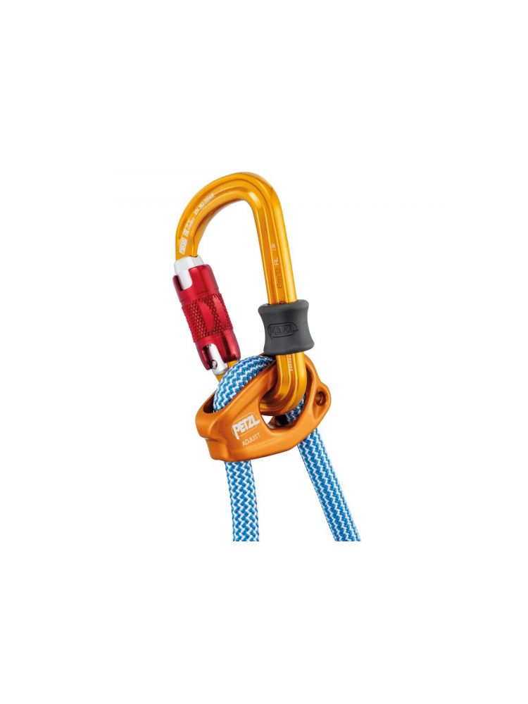 – ułatwione wpinanie i wypinanie karabinka, który jest utrzymywany w prawidłowej pozycji w przyrządach ADJUST, dzięki kauczukowemu pierścieniowi TANGA – otwór w przyrządzie blokującym ADJUST umożliwia przewleczenie linki pomocniczej i ułatwia odblokowanie pod obciążeniem