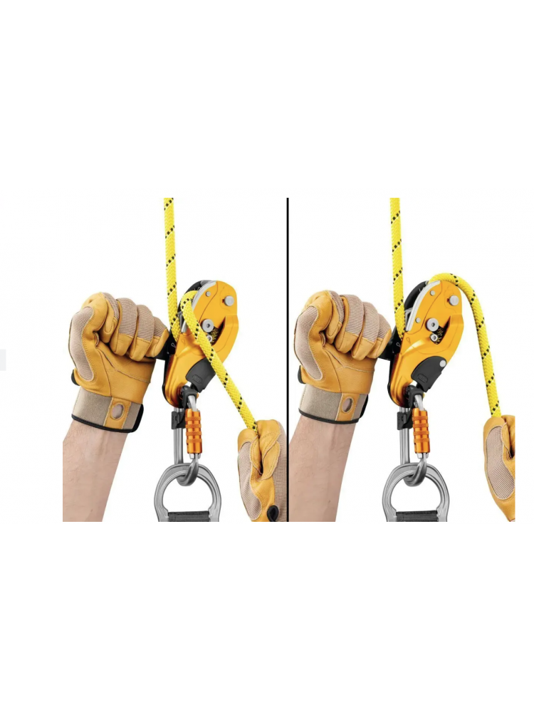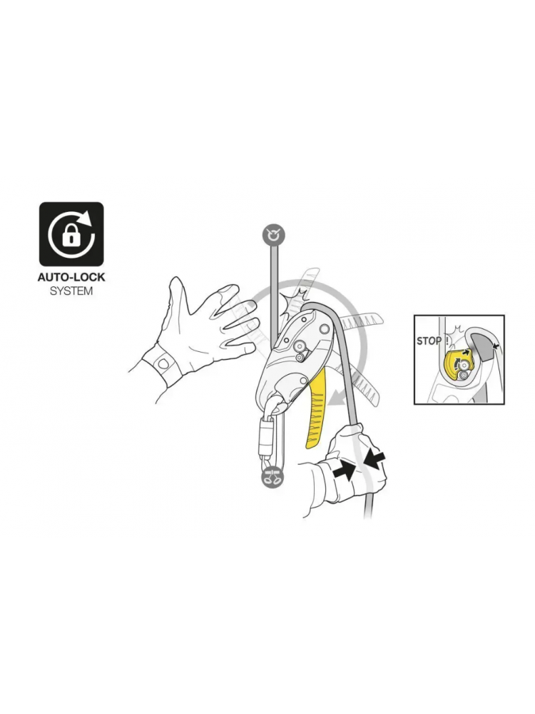 – automatyczny powrót rączki do pozycji transportowej po wyjęciu liny z przyrządu zmniejsza ryzyko przypadkowego zahaczenia, gdy przyrząd jest noszony przy uprzęży.