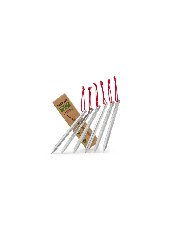 Rockland Reflective Pegs to lekkie aluminiowe śledzie, które ułatwiają zlokalizowanie ich w ciemnościach dzięki odblaskowym linkom.Spłaszczony kształt ułatwia używanie śledzi w sypkim podłożu. Dzięki linkom śledzie łatwiej zlokalizować i łatwiej wyjąć z podłoża.