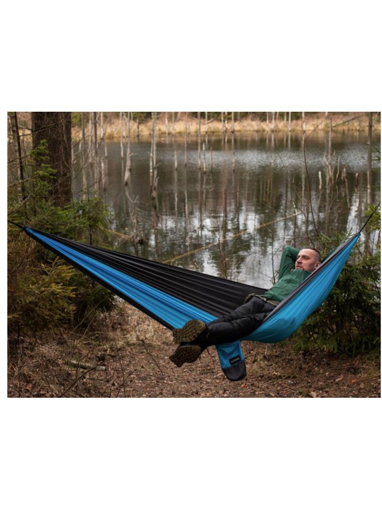 Hamak turystyczny Letna to rekreacyjny model z lekkiego, przewiewnego materiału, który wykorzystasz zarówno w domowym ogrodzie, jak i na campingu z przyjaciółmi. Praktyczne taśmy z karabińczykami ułatwiają montaż i późniejsze zdejmowanie. Kieszonka jest jednocześnie pokrowcem, dlatego nie musisz się martwić, że zgubisz opakowanie gdzieś na wyprawie.
