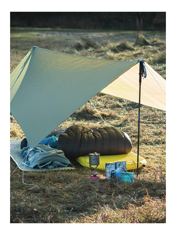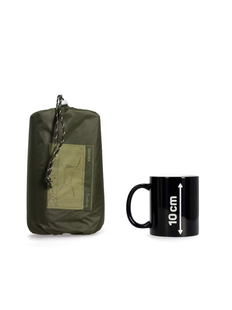 Konstrukcja w kształcie trapezu zapewnia skuteczną ochronę przed warunkami atmosferycznymi, a zastosowanie lekkiego i wytrzymałego silnylonu w splocie mikroripstop gwarantuje odporność na uszkodzenia oraz bardzo dobrą wodoodporność. Dzięki kompaktowym wymiarom po spakowaniu tarp zajmuje niewiele miejsca w plecaku, co czyni go praktycznym elementem wyposażenia podczas dłuższych wypraw.