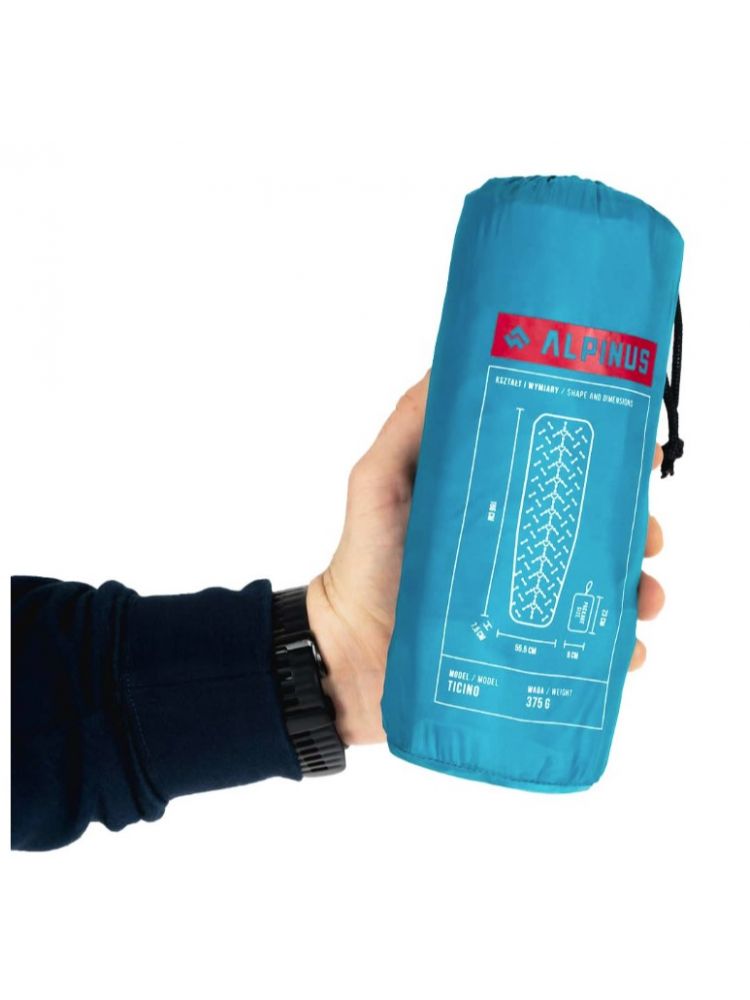 Model Ticino to ultralekki materacyk turystyczny. Jest niezbędnym elementem wyposażenia dla każdego miłośnika survivalu, który stawia na minimalizm i wygodę. Kompaktowy i lekki, waży tylko 375g. Wykonany z lekkiego, miłego w dotyku materiału, zapewnia nie tylko komfortowy sen, ale także oszczędza miejsce w plecaku.