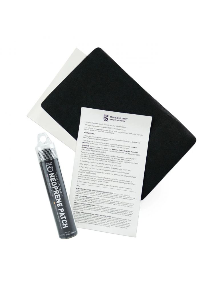 GearAid Iron-On Neoprene Patch to łatka naprawcza zaprojektowana specjalnie do szybkich i trwałych napraw odzieży i sprzętu neoprenowego. Dzięki powłoce aktywowanej ciepłem (prasowaniu żelazkiem) łatkę można trwale przymocować do materiału, a elastyczna konstrukcja rozciąga się razem z neoprenem, nie ograniczając ruchów i zachowując integralność materiału. Idealna do usuwania rozdarć, dziur i wzmocnień w miejscach o dużym zużyciu – takich jak kolana, łokcie czy mankiety.