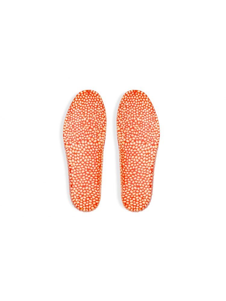 Specjalnie opracowany profil wkładek izoluje stopy od twardych powierzchni, redukując naciski i amortyzując wstrząsy, co znacząco poprawia komfort użytkowania. Zwiększona powierzchnia styku pięty z podłożem zapewnia lepszą stabilizację i równomierne rozłożenie nacisku, co pomaga zmniejszyć zmęczenie stóp nawet po wielu godzinach pracy.