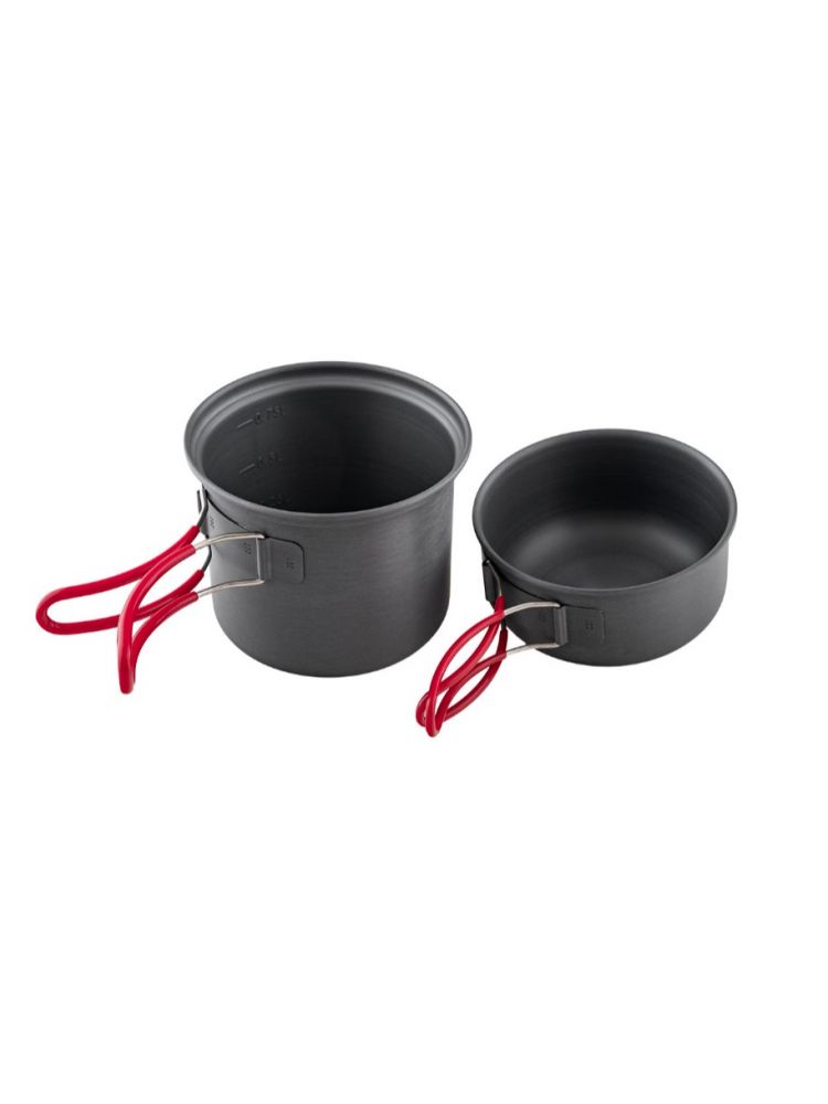 Zestaw garnków turystycznych Valdes o uniwersalnym przeznaczeniu. Możesz korzystać z nich na kuchence turystycznej, ognisku czy palniku. Wykonany z anodyzowanego aluminium, zapewnia trwałość i lekkość, niezbędną podczas podróży. W zestawie wygodny woreczek transportowy.
