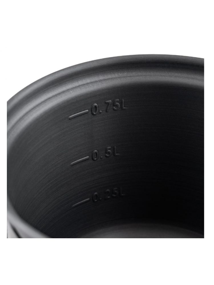 - Dwa garnki w zestawie: większy o pojemności 0,75 L, mniejszy (0,5L) może służyć też jako pokrywka;