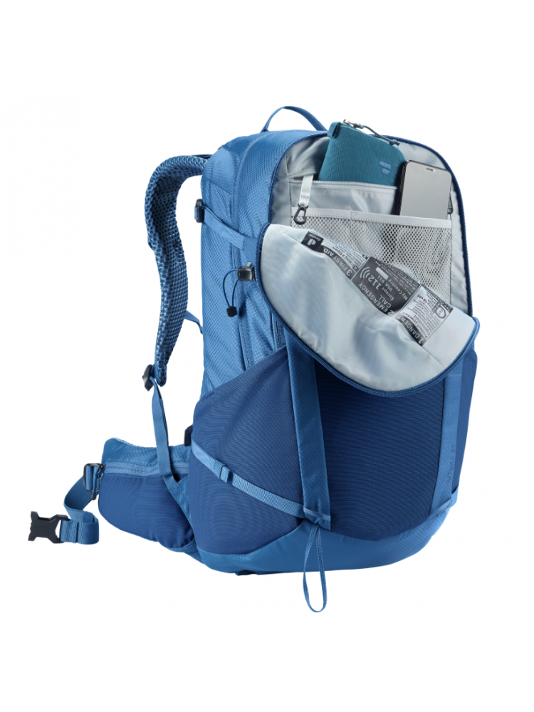 Komora główna otwierana jest od góry poprzez klapę z klamrami i sznurek ze stoperem. Wewnątrz znajduje się specjalna kieszeń na bukłak z wodą wraz z wyjściem na rurkę systemu hydracyjnego. Z przodu umieszczono elastyczną kieszeń, doskonałą na kurtkę przeciwdeszczową czy lekką bluzę, a po bokach dwie kieszenie z siatki idealne na butelki lub termos. Dodatkowe elementy ekwipunku można przytroczyć do plecaka przy pomocy bocznych pasków kompresyjnych i specjalnych troków na kijki trekkingowe lub czekan.