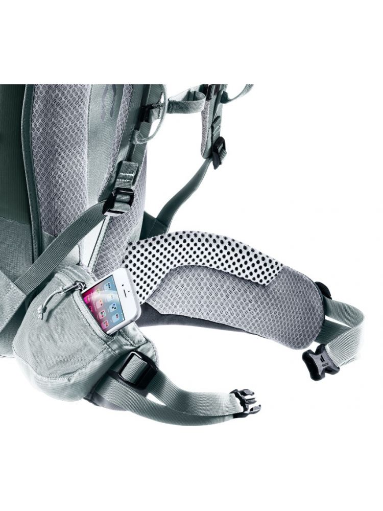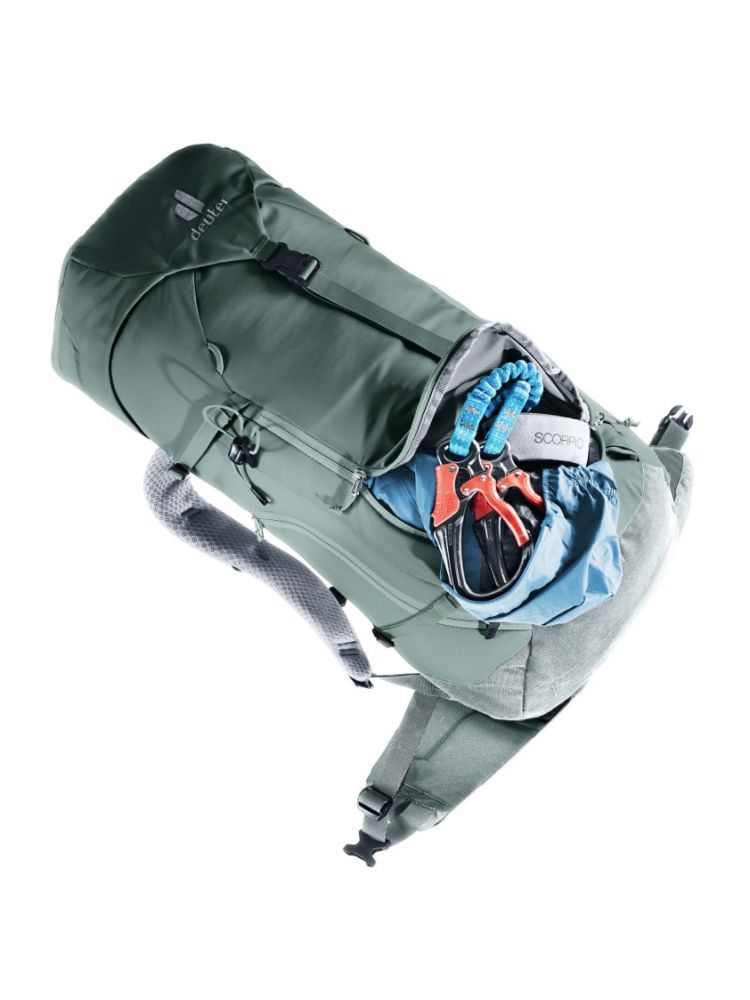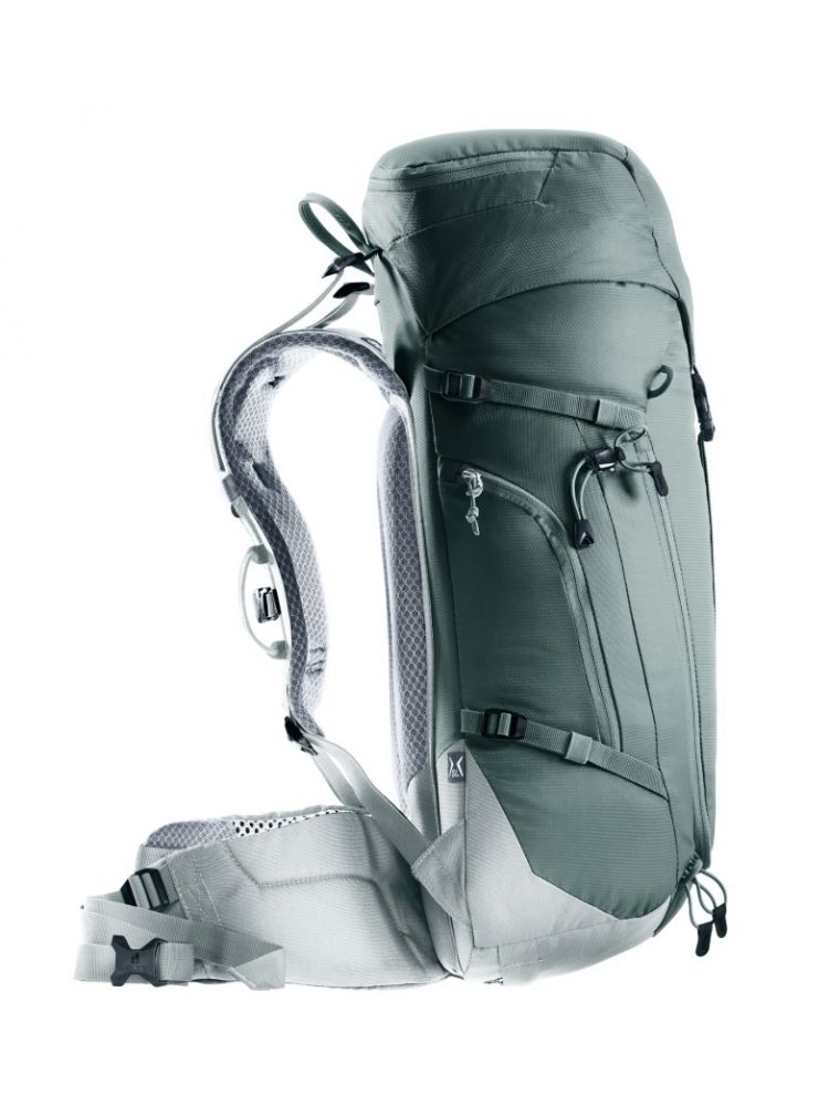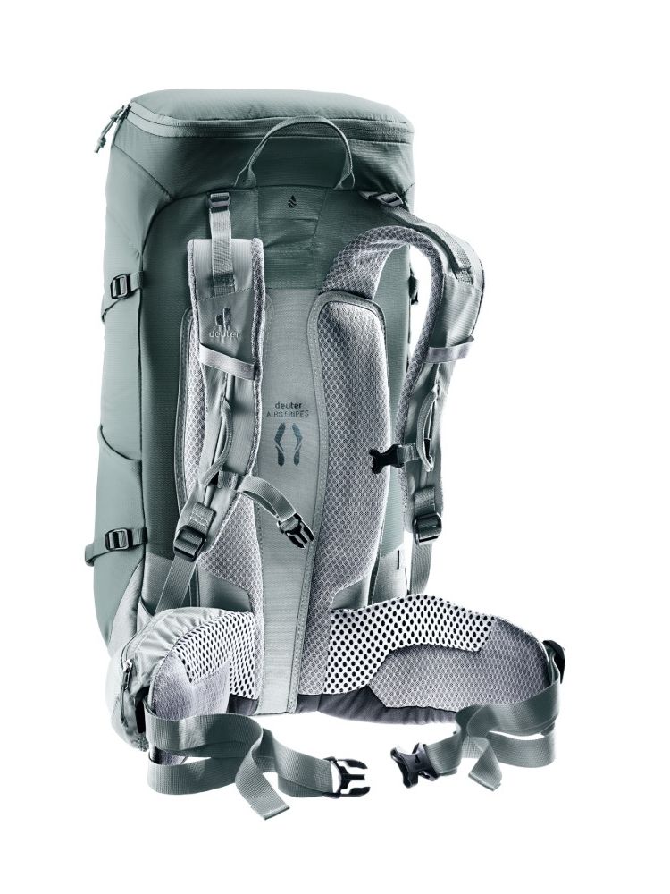 Zmniejszona powierzchnia styku i duże kanały wentylacyjne systemu nośnego Deuter Airstripes zapewniają optymalny przepływ powietrza, a perforowane szelki i pas biodrowy (z kieszeniami) zapewniają równomierne rozłożenie ciężaru – zapewniając dokładne i bezpieczne dopasowanie w każdym terenie. Płaska klapa zapewnia swobodę ruchów głowy, nawet w kasku. Pętle na szelkach pozwalają na wygodne zamocowanie karabinków do zestawu via ferrata. Dzięki dużemu przedniemu zamkowi błyskawicznemu i bocznym kieszeniom, sprzęt i wyposażenie są zawsze łatwo dostępne.