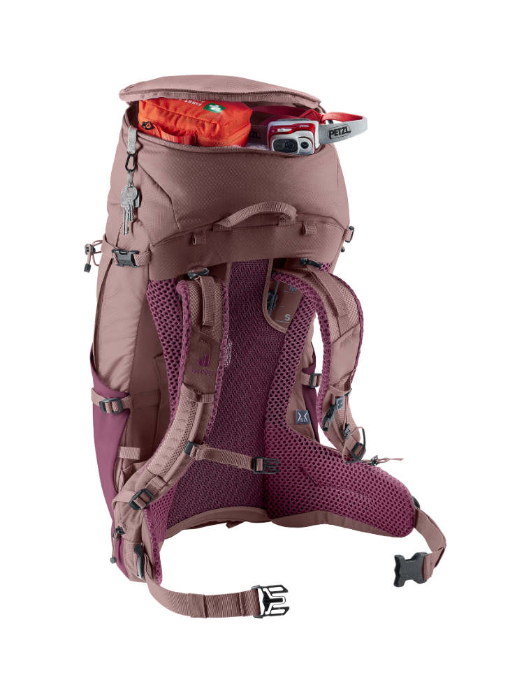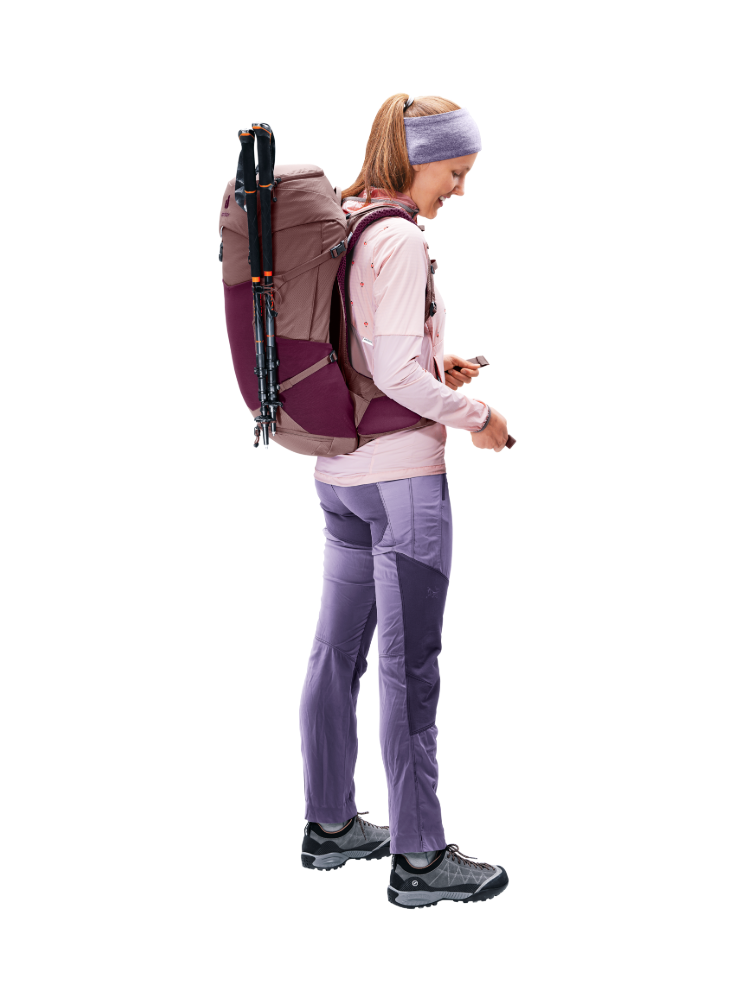 Deuter Futura Pro 34 cassis-ashrose to nowoczesny plecak trekkingowy o pojemności 34 litrów, zaprojektowany z myślą o kilkudniowych wyprawach w góry, turystyce pieszej i podróżach. Wyróżnia się wysokim komfortem noszenia, doskonałą wentylacją oraz przemyślaną organizacją przestrzeni, dzięki czemu idealnie sprawdzi się w wymagających warunkach terenowych.
