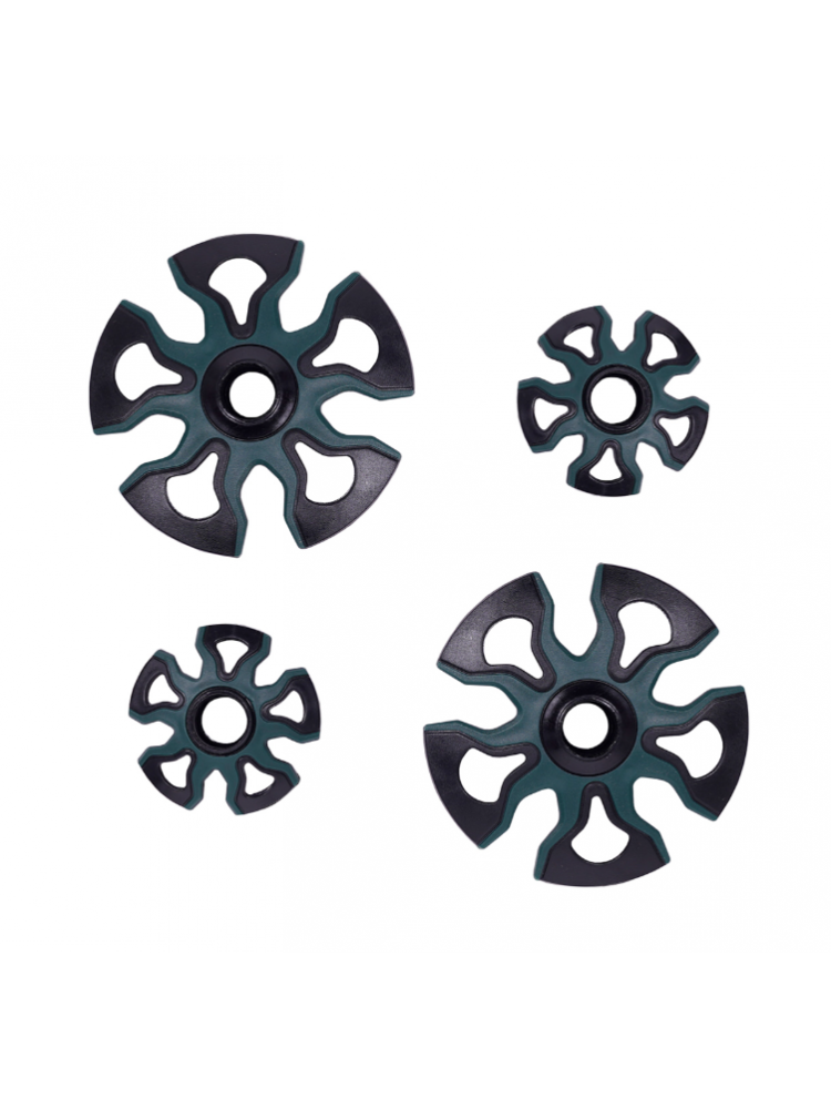 W komplecie talerzyki klasyczne i zimowe, końcówki oraz rzep do spinania kijków.