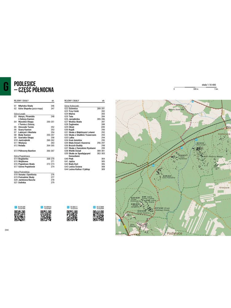W przewodniku zastosowano sprawdzone rozwiązania z „Jury Południowej”. „Jura Północna” została zaprojektowana tak, aby w jak największym stopniu ułatwić Wam dojazd pod skały i wybór wspinaczkowych celów. Znajdziecie w nim kolorowe mapy pokazujące usytuowanie skał (dzięki podkładom map przygotowanych przez Tomka Ślusarczyka orientacja w terenie będzie łatwiejsza), linie dróg w kolorach odpowiadających zakresowi trudności oraz fotokody, za pomocą których każdy posiadacz nowoczesnego telefonu może błyskawicznie wczytać do nawigacji współrzędne parkingu lub zobaczyć pozycję skały na mapie.