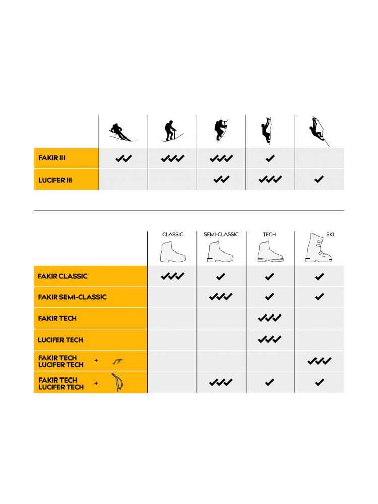 Raki FAKIR III CLASSIC dostosowane są do rozmiaru butów 37-47.