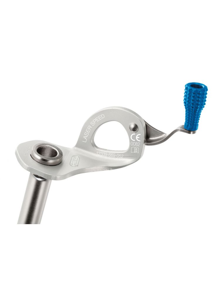 Laser Speed została wykonana z doskonałej jakości stopów. Zakończona czterema doskonale wyprofilowanymi ostrzami ze stali. Ich agresywny charakter sprawia, że wystarczy zaledwie 1/4 obrotu aby Laser Speed wgryzła się nawet w szczególnie twardą lodową formację. Bardzo pomocna okazuje się rozkładana korbka, która znacznie przyspiesza osadzanie śruby. Profilowane ramię umożliwia skuteczne przełożenie siły, a wykonane z tworzywa sztucznego obrotowe zakończenie umożliwia pewny chwyt nawet w grubych rękawicach zimowych. Kolor tego elementu pozwala również na szybkie określenie rozmiaru “rury”. Spora średnica i solidny gwint sprawiają, że nawet częściowo wkręcona i odpowiednio skrócona śruba zapewnia skuteczną protekcję. Korpus wykonano z anodowanego aluminium.