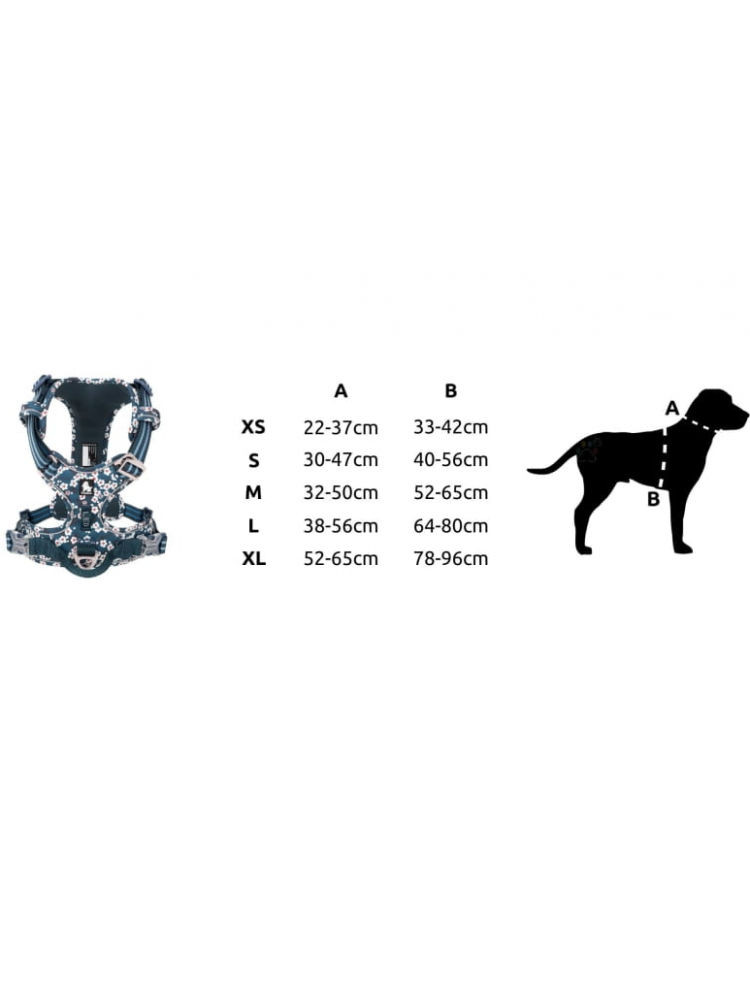 Uprząż wyróżnia nietuzinkowy wzór i intensywna, ciekawa kolorystyka. Jeśli nie lubisz nudy w psiej garderobie, a odważne wzory nie są Ci straszne – model Blossom musi znaleźć się w psiej szafie!