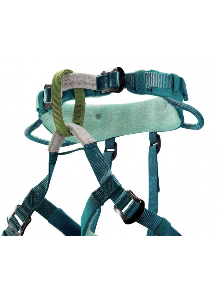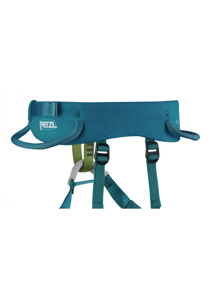 MACCHU, uprząż dla małych wspinaczy! Dzięki regulowanemu pasowi biodrowemu i taśmom udowym można ją łatwo dopasować do wzrostu dziecka. Pas biodrowy i taśmy udowe są wyściełane, co zapewnia wysoki komfort podczas zwisu. Dwie klamry na pasie ułatwiają prawidłowe wycentrowanie punktów wiązania, a pętla asekuracyjna ma inny kolor, co ułatwia szybką kontrolę wzrokową. Uprząż ma dwa uchwyty sprzętowe do transportu ekspresów.